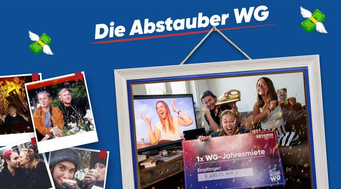 Severin Floorcare übernimmt für das coolste WG-Team die WG-Miete für ein komplettes Jahr und begleitet die Bewohner mit Testprodukten und Events in ihrem WG-Alltag. Im Gegenzug wird das WG-Team über den neuen Lifestyle unter dem Hashtag #abstauberwg posten und in den Videos und Blogbeiträgen auch die Produkte des Sponsors sowie weiterer Kooperationspartner präsentieren.