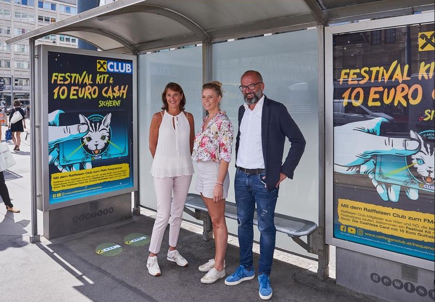 Der Raiffeisen Club, ein Angebot der österreichischen Raiffeisenbanken, mit der Kernzielgruppe Schüler, Lehrling oder Student zwischen 14 und 27 Jahren, bewirbt sein Angebot rund um das FM4 Frequency Festival (15. – 17. August 2017 – St. Pölten) mit einer kreativen Out of Home-Kampagne, unter Einbeziehung von digitalen und analogen City Lights.