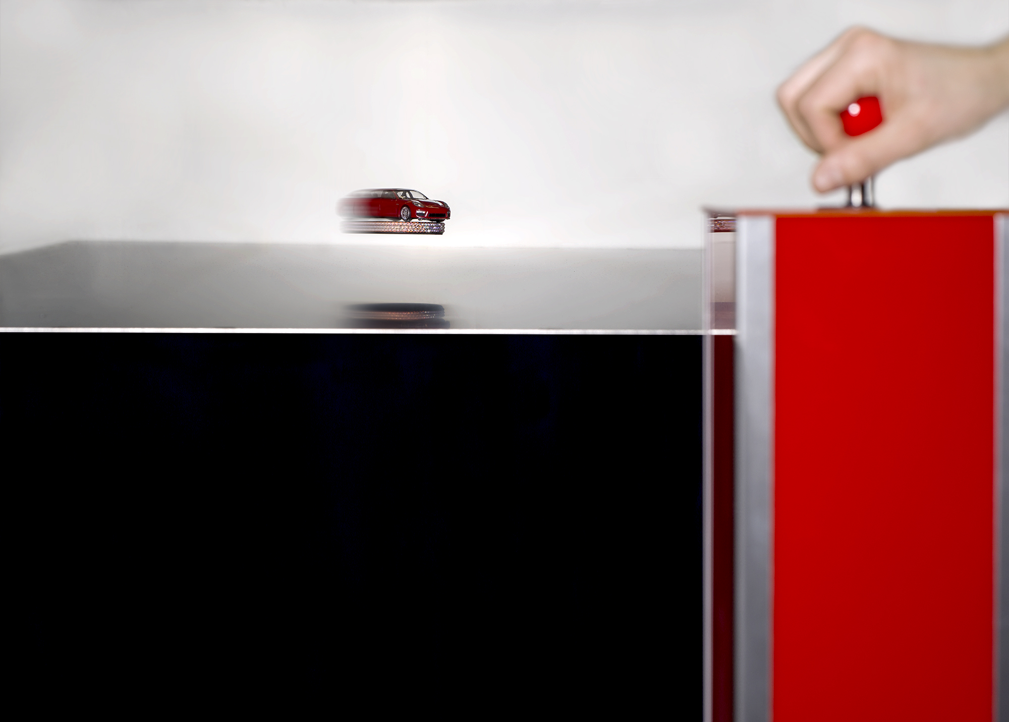 Über die 160 x 80 cm große Edelstahlplatte fliegen Produkte wie Handys, Automodelle und Kosmetika in jede vorgegebene Richtung. Eine interaktive Präsentation, die laut Hersteller Besuchern Spaß machen und Schaufenstern ein ganz besonderes Erlebnis verleihen soll. "Es gibt sehr viele spannende Möglichkeiten, seine Kunden mit einem Schwebespiel zu unterhalten – sei es eine Zeitreise, ein Rennspiel oder eine Tour über Kontinente hinweg", sagt Usables Geschäftsführer Oliver Plantenberg.