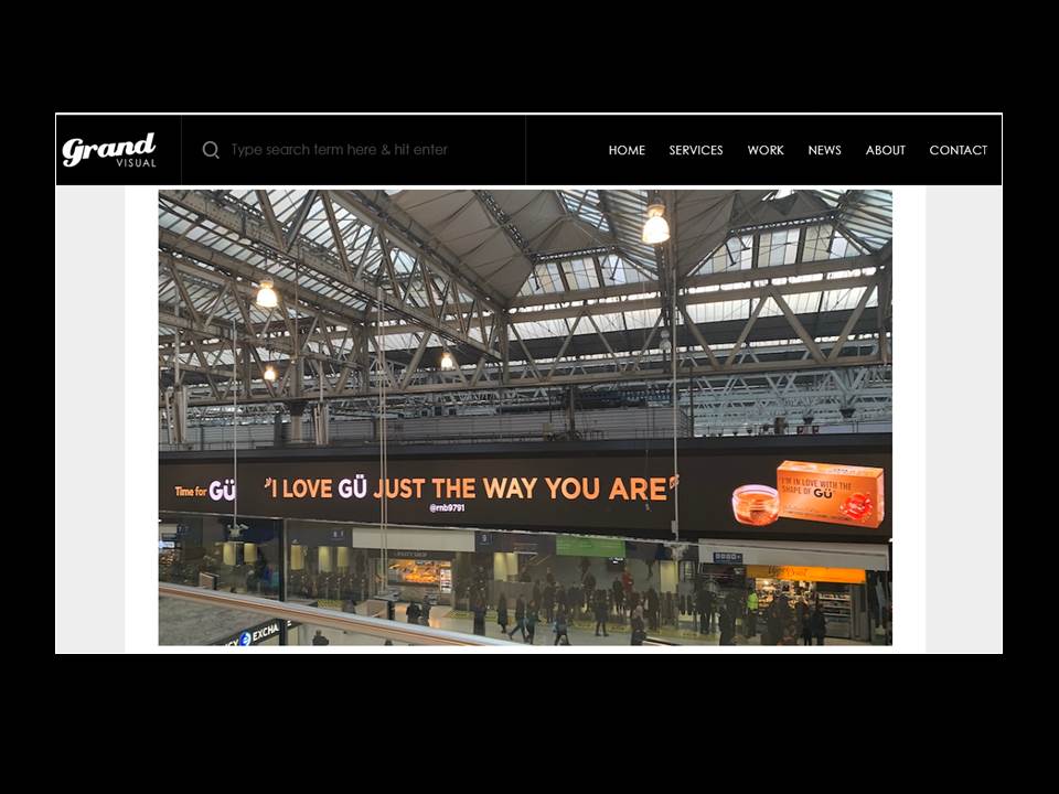 Zwecks Unterstützung ihrer limitierten Valentinstag-Verpackung hat die preisgekrönte Dessert-Marke vom 14.-16. Februar 2020 Großbritanniens größten Indoor-Bildschirm gebucht. Auf dem digitalen OoH-Display in der Waterloo Station, Londons verkehrsreichstem Bahnhof, präsentiert Gü die besten User-Beiträge ihrer Love-Notes Kampagne, bei der Twitter-User aufgerufen wurden, ihren Lieblings-Liebessong mit dem Textelement "GÜ" umzugestalten. So wurde z.B. aus dem Elvis Klassiker "I can’t help falling in love with you" "I can’t help falling in love with Gü". Die Teilnehmer, deren Beitrag veröffentlicht wurde, konnten nicht nur stolz auf die auffällige Platzierung im XXL-Format sein, sondern erhielten auch ihren persönlichen Videoclip als Belohnung.