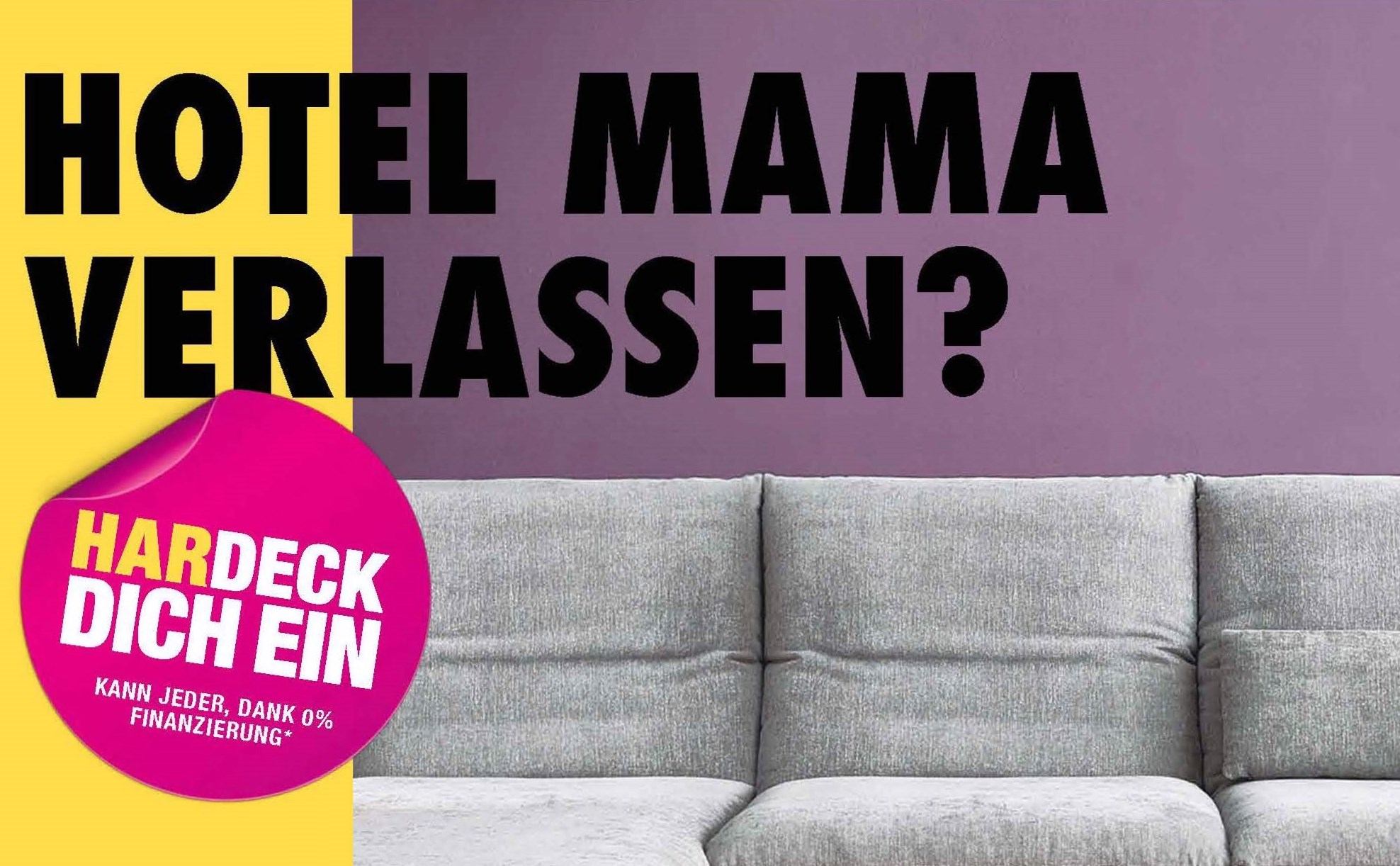 Auf provokante Fragen wie "Pille vergessen?" oder "Hotel Mama verlassen?" antwortet der Möbelhändler jeweils mit "Hardeck dich ein!". Er lädt mit seiner Tiefpreisgarantie dazu ein, jeder Lebensveränderung mit einer neuen Wohnausstattung zu begegnen – sei es die erste Wohnung oder das neue Kinderzimmer. Die fünf OOH-Visuals sind auf City- und Megalights sowie am POS, auf Online-Bannern und Edgar Cards geschaltet. Eine Funkausstrahlung rundet das Kommunikationspaket ab.