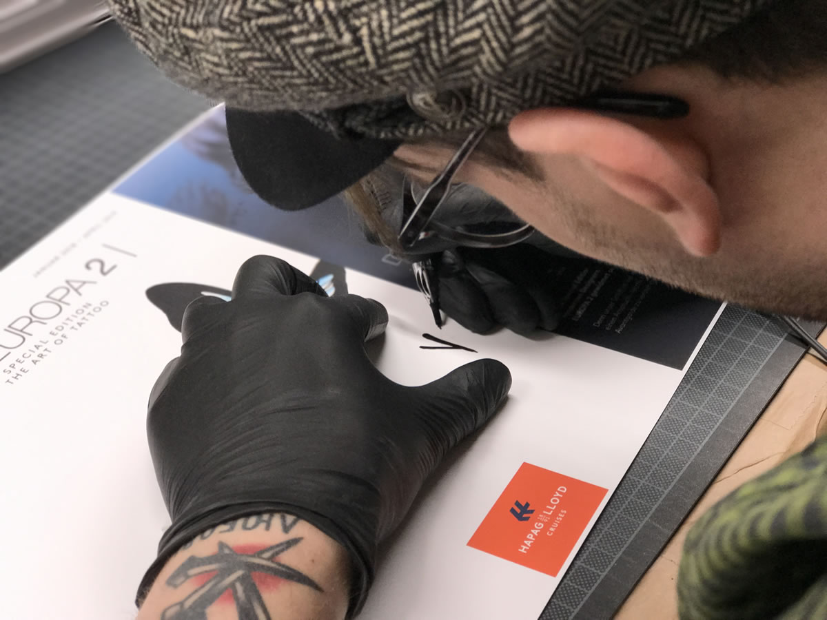 Gedruckte Verkaufsprospekte – als Kunstwerk gestaltet oder produziert – können Produktinformationen mit nachhaltigem Sammelwert werden. So hat jetzt Hapag-Lloyd Cruises einen Kreuzfahrtkatalog als limitierte Sonderedition mit einer besonderen Signatur herausgebracht: Der Hamburger Tattoo-Künstler Tobi Tietchen hat für den neu erschienenen MS EUROPA 2 Katalog 2018/2019 eine Special Edition des Covers gestaltet und mit der Tattoo-Nadel signiert. Die 100 exklusiven Exemplare des Sonder-Katalogs werden ausgewählten Gästen und Partnern zur Verfügung gestellt.