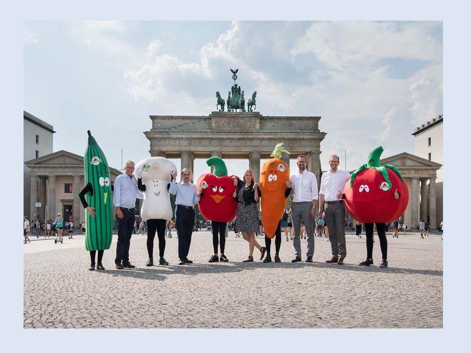 Am Berliner Hauptbahnhof, am Brandenburger Tor und am Alexanderplatz sind Tomate, Gurke, Champignon, Karotte und Paprika mit einem sympathischen Augenzwinkern auf die Straße gegangen, um auf ihre heimischen Qualitäten aufmerksam zu machen. Die Großfiguren luden zum Kuscheln, Fotografieren oder einfach zum Konsum von mehr heimischem Gemüse ein.