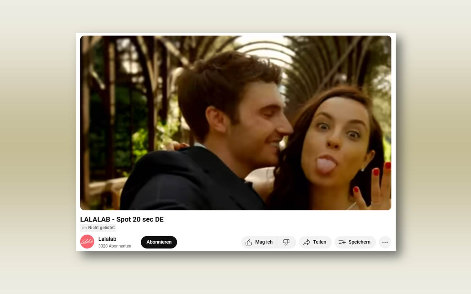 Die Medienagentur DCMN ist zuständig für die Spots in den Formaten sechs und acht Sekunden für die Billboard-Spots, Sponsored TV-Segment, im Rahmen der VOX Sendung "Zwischen Tüll und Tränen". Die Zehn-Sekünder und 20-Sekünder wurden für TV und YouTube erstellt. Über die Sender VOX, TLC, Deluxe, Sixx und HGTV soll primär die Zielgruppe der überwiegend weiblichen Nutzerinnen der Lalalab App angesprochen werden. Insgesamt schaltet Lalalab mehr als 1.000 Spots mit einem Werbebudget im sechsstelligen Euro-Bereich.