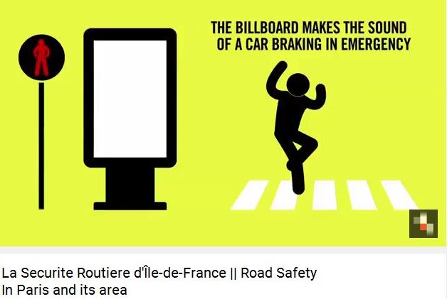 Die Agentur Serviceplan France und die französische Verkehrssicherheitsbehörde DRIEA machen mit multisensorischen Infoscreen-Installationen ("Virtual Crash Billboards") Fußgänger auf Sicherheitsrisiken aufmerksam.