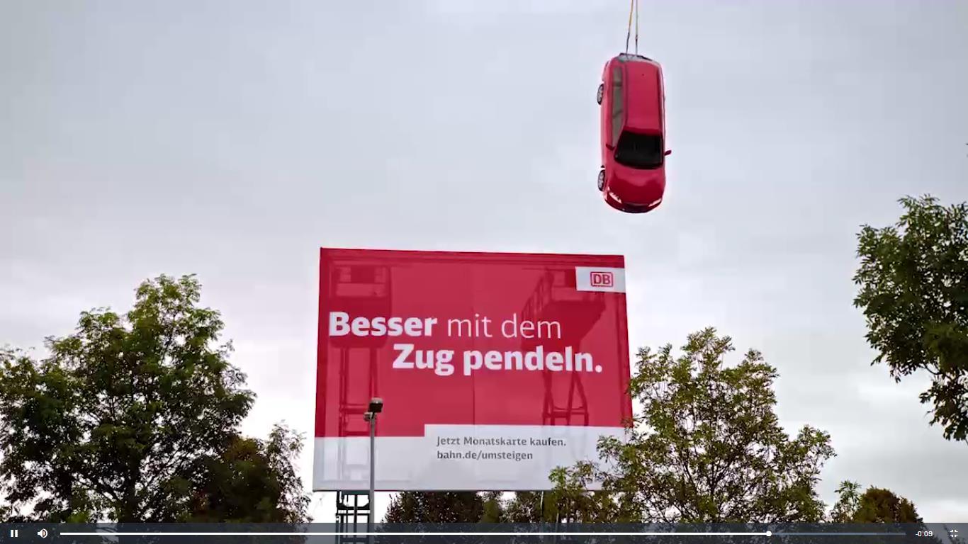 Staugeplagte Autofahrer am Kreuz Köln-West staunten nicht schlecht über eine Installation von DB Regio, die sie morgens und abends daran erinnerte, dass es einen besseren Arbeitsweg als die Autobahn gibt. Ein Auto, das in ca. 40 Metern Höhe an einem Kran pendelte sowie ein direkt daneben platziertes Plakat mit der Headline "Besser mit dem Zug pendeln" sorgte für einen Aha-Effekt.