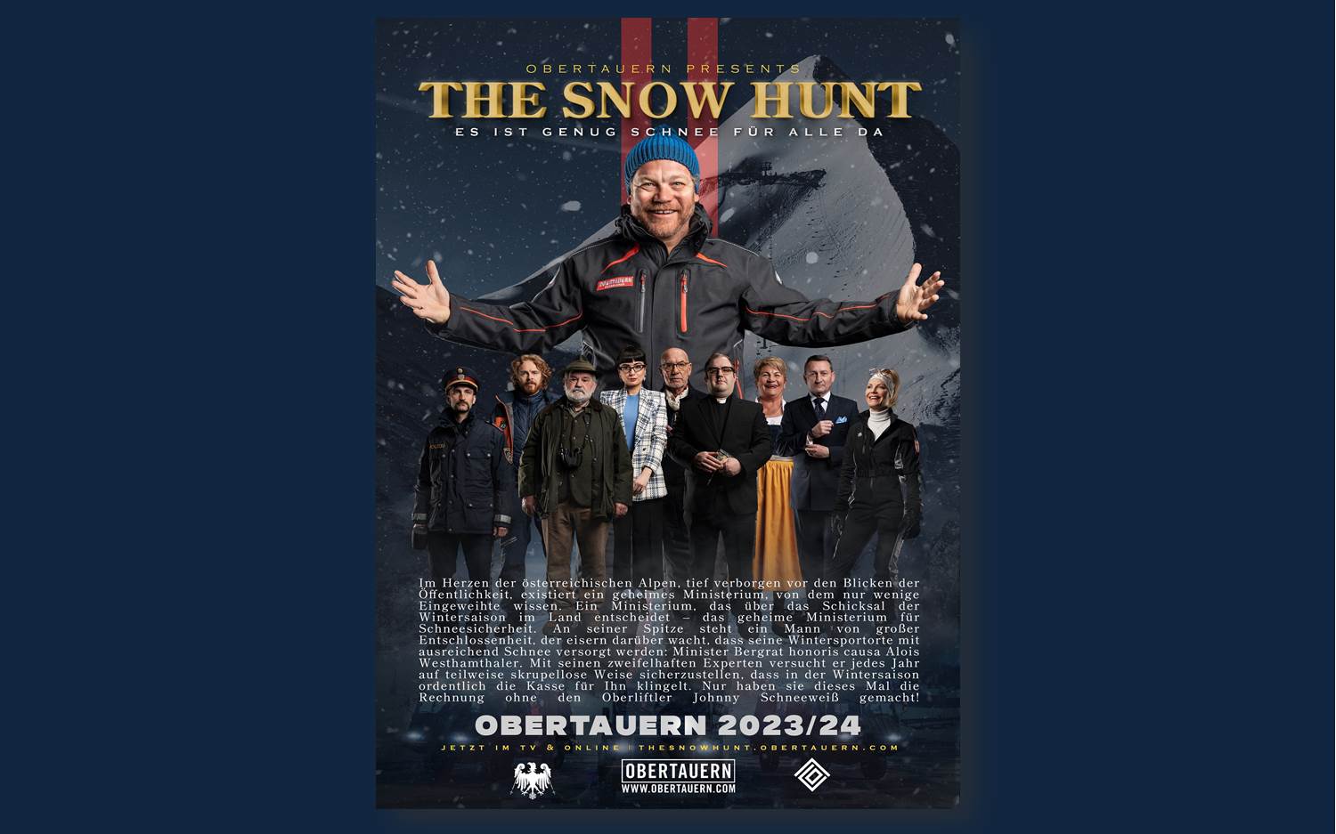 Im Herzen der österreichischen Alpen, tief verborgen vor den Blicken der Öffentlichkeit, existiert ein geheimnisvolles Ministerium: das Ministerium für Schneesicherheit, das über das Schicksal der Wintersaison im Land entscheidet. An seiner Spitze steht ein Mann von großer Entschlossenheit, der darüber wacht, dass seine Wintersportorte mit ausreichend Schnee versorgt werden: Minister Bergat honoris causa Alois Westhamthaler, der von dem bekannten Schauspieler Otto Retzer verkörpert wird.