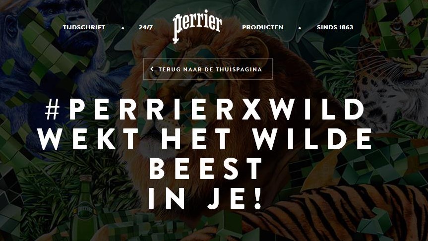Die belgische Website zur PERRIERXWILD-Kampagne | Screenshot: https://www.perrier.com/be/nl-be/perrier-x-wild 15.01.2018