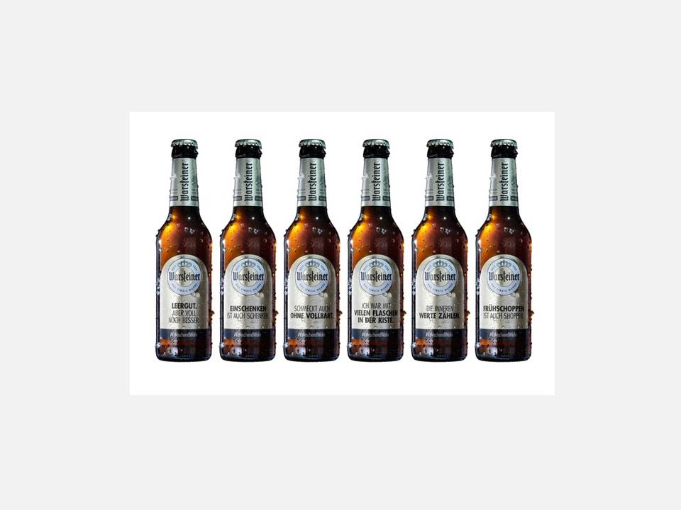 Titelbild: Warsteiner mit "bierernsten" Sonderetiketten (Copyright: Warsteiner Brauerei)