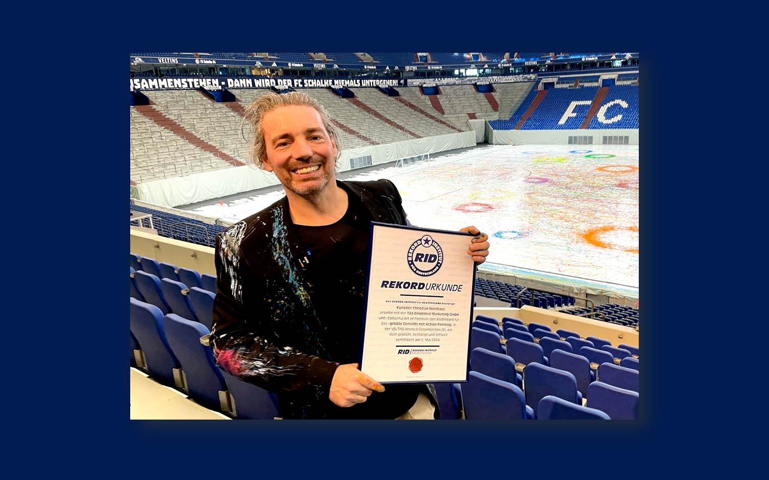 Weltrekord, Christian Nienhaus, Colourful Art of Football, RID-Weltrekord, Rekord-Kunstwerk, größtes Gemälde mit Action-Painting, Rekord-Institut für Deutschland, RID, Arena auf Schalke, Charity-Projekt, Fußball-Kunst-Projekt, Rekord-Event, CSR