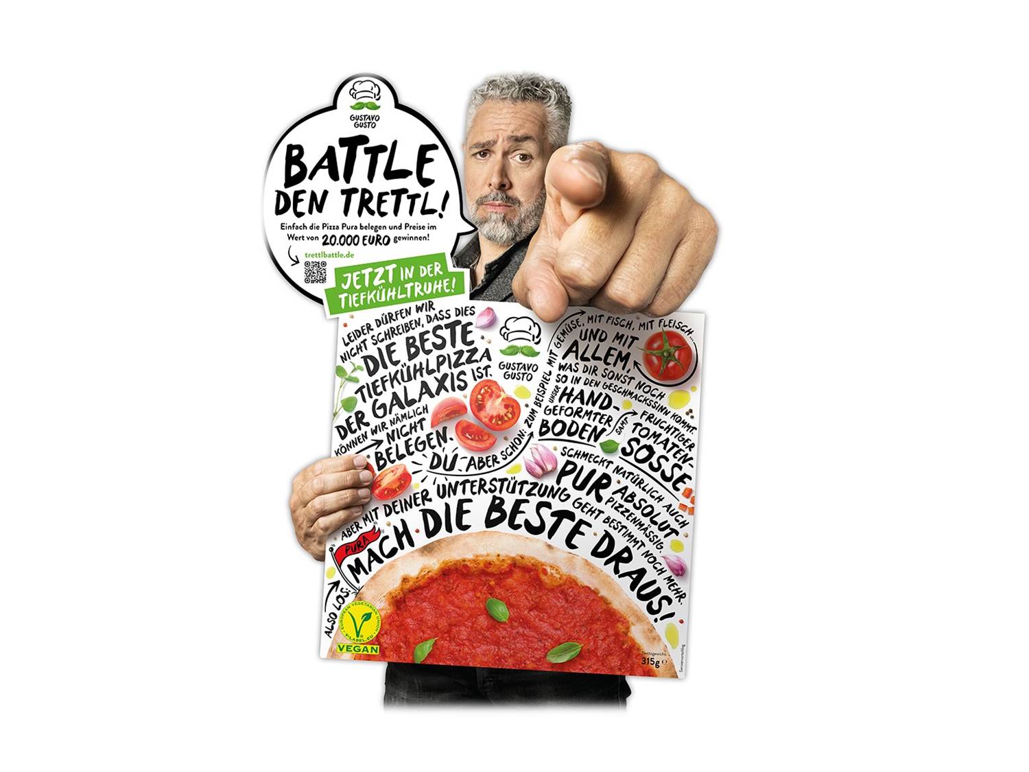 Bild: Gustavo Gusto Kampagne mit Starkoch Roland Trettl – Pizza "Pura" PoS-Aufsteller (Foto: Gustavo Gusto)