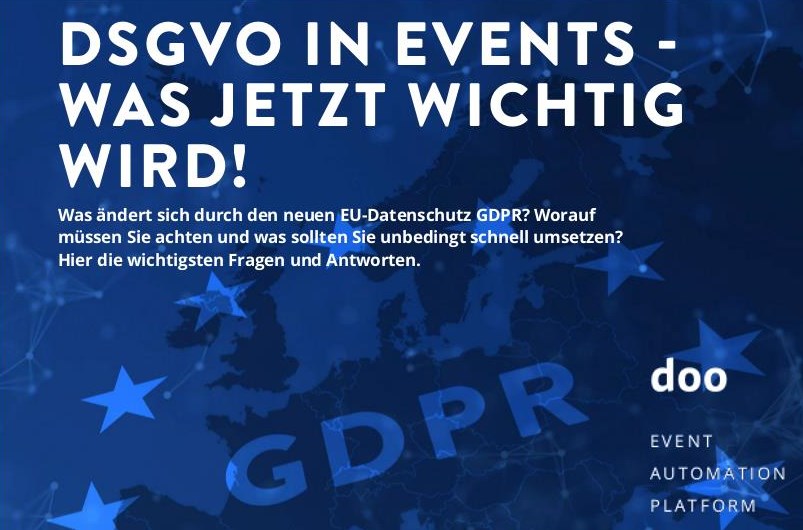 Weitere Fragen zum Thema DSGVO und Events beantwortet doo in Kooperation mit Christian Schmoll im E-Book "DSGVO in Events – Was jetzt wichtig wird". Es steht gegen Angabe von Kontaktdaten unter https://goo.gl/TT12xa zum Download zur Verfügung.