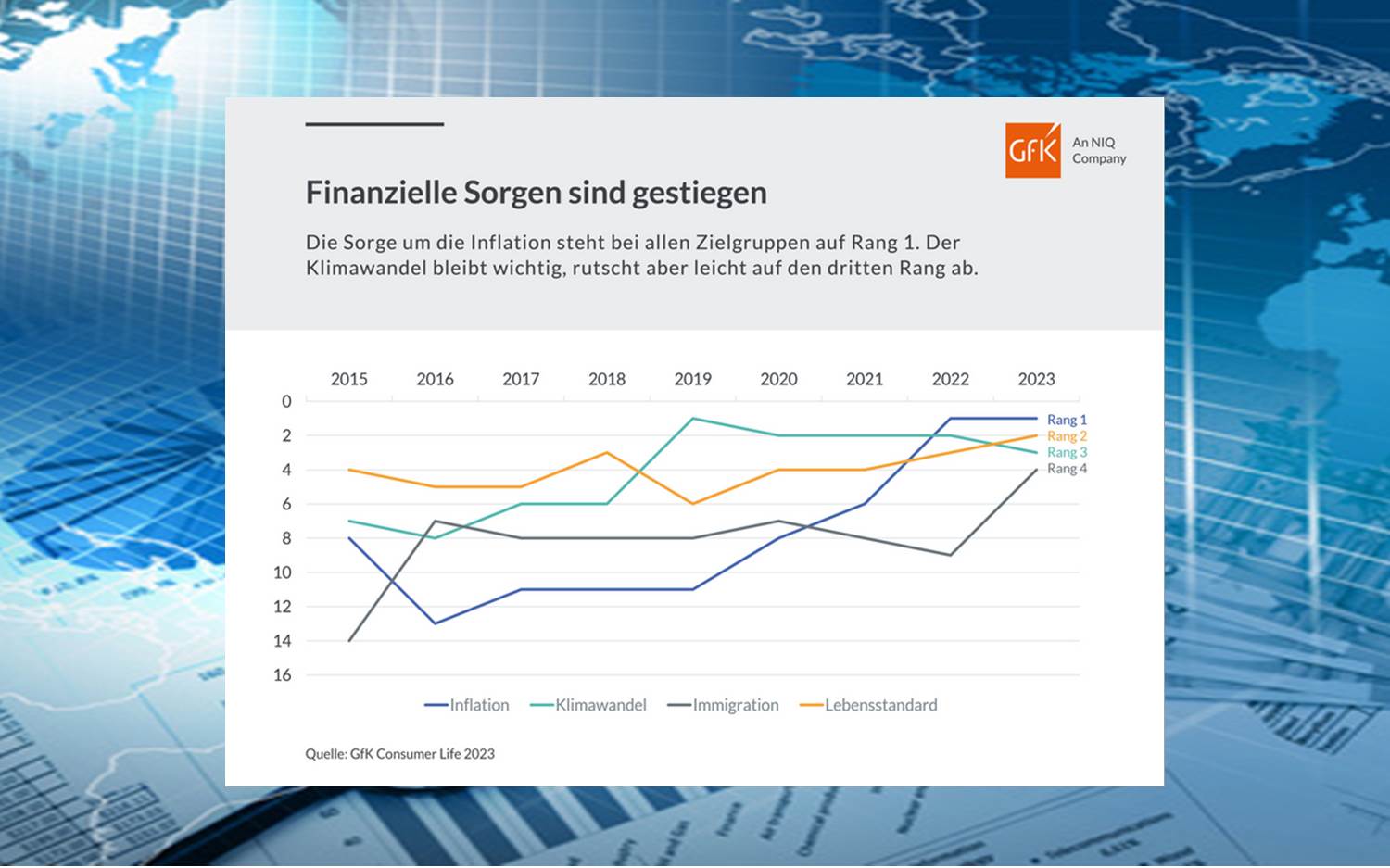 Die neu erschienene GfK Consumer Life Studie zeigt, was die Deutschen derzeit am meisten umtreibt. Laut der Studie haben sich die Top-Sorgen der Deutschen verschoben. Wie im Vorjahr ist die Angst vor der Inflation weiterhin auf Rang 1. Entsprechend wächst die Sorge der Deutschen, nicht genug Geld zu haben, um ihre Rechnungen zu bezahlen. Sie ist mittlerweile die zweitgrößte Angst der Verbraucher und verdrängt damit die Sorge um den Klimawandel auf den dritten Platz.