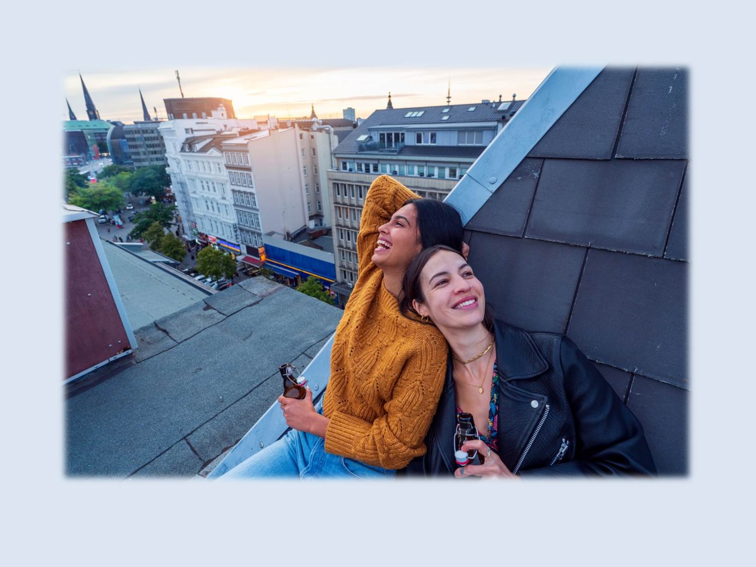 Titelbild: Auf dem Dach sitzen, mit der besten Freundin und einem Feierabend-Bier (gerne auch alkoholfrei) | Bildmotiv von Getty Images – Die Menschen streben zur Zeit vor allem nach den kleinen guten Momenten im Leben.