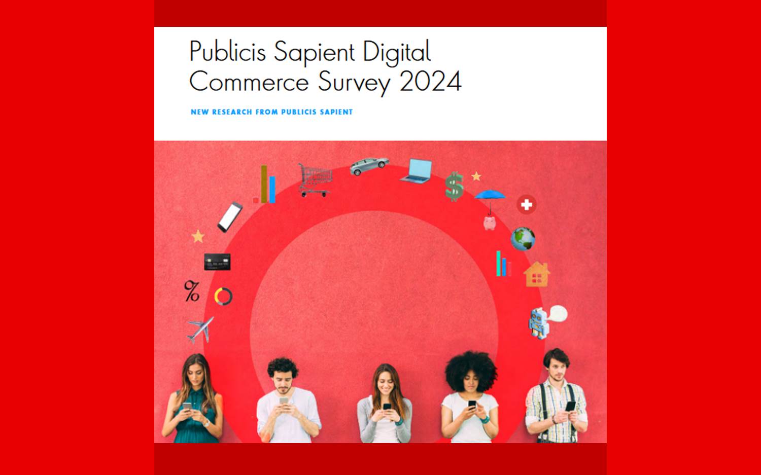 Titelbild: Cover-Motiv der internationalen Studie "Digital Commerce Survey 2024" von Publicis Sapient. (Bildrechte: Publicis Sapient; Composing / Collage: marketingScout.com Redaktion)