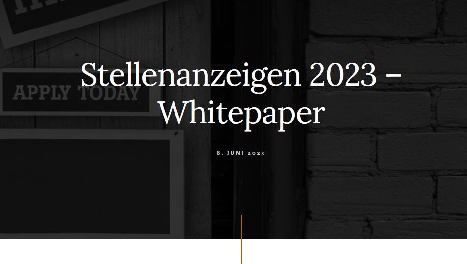Ein Whitepaper zur "Stellenanzeigen 2023 Studie" gibt es für Firmen zum kostenlosen Download (gegen Angabe von Kontaktdaten).